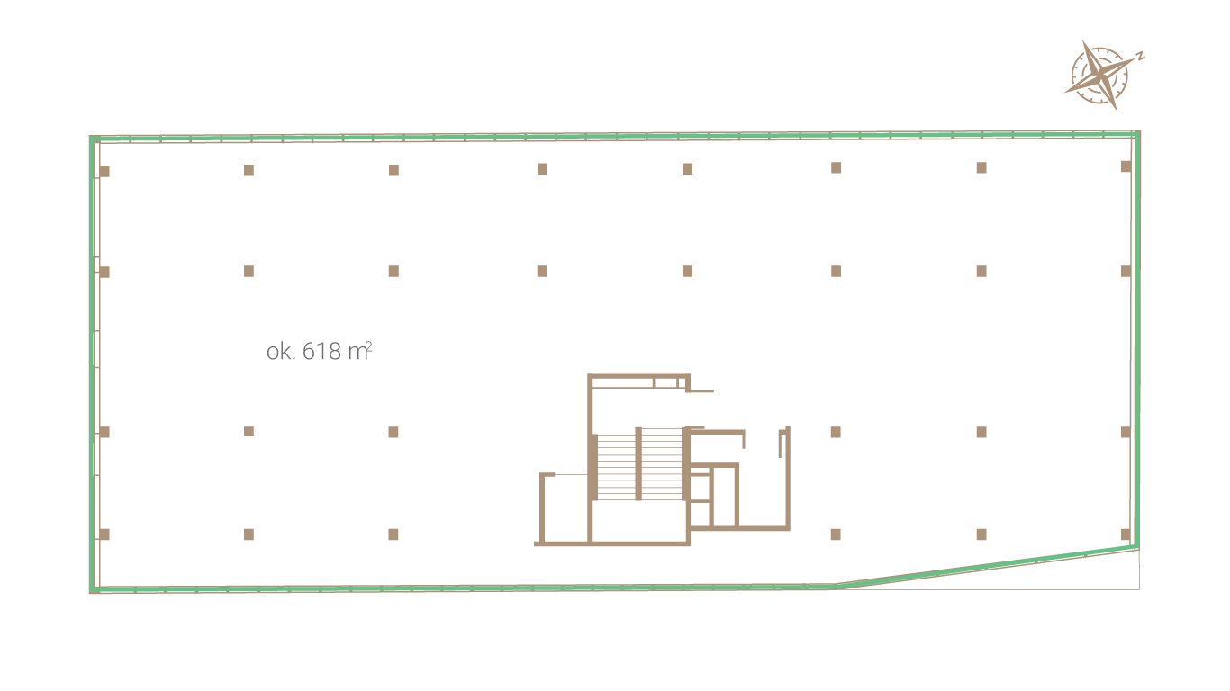 Na 1 i 2 piętrze znajdują się lokale biurowe w formie open space o powierzchni około 620 m². Istnieje możliwość podziału na dwa mniejsze lokale biurowe o powierzchni około 300 m². Lokale są przeznaczone do własnej aranżacji oraz wykończenia.